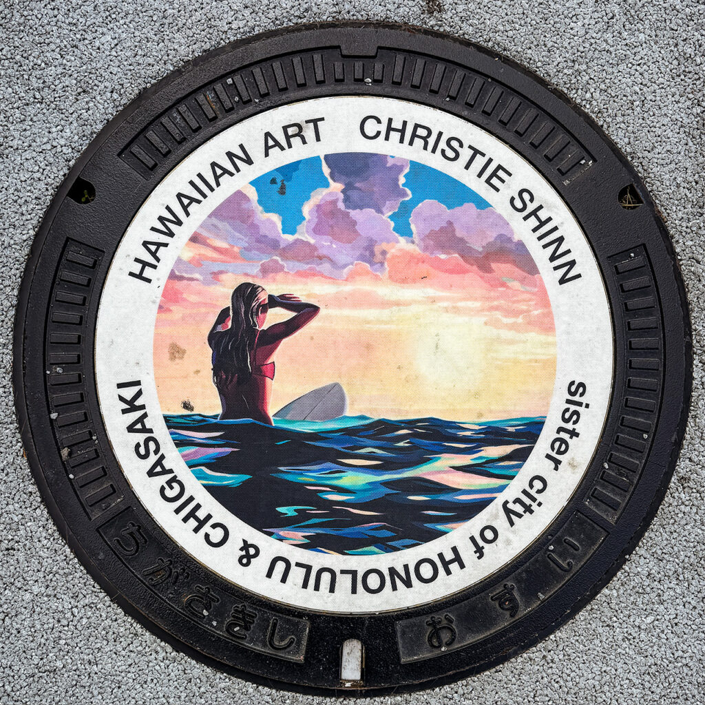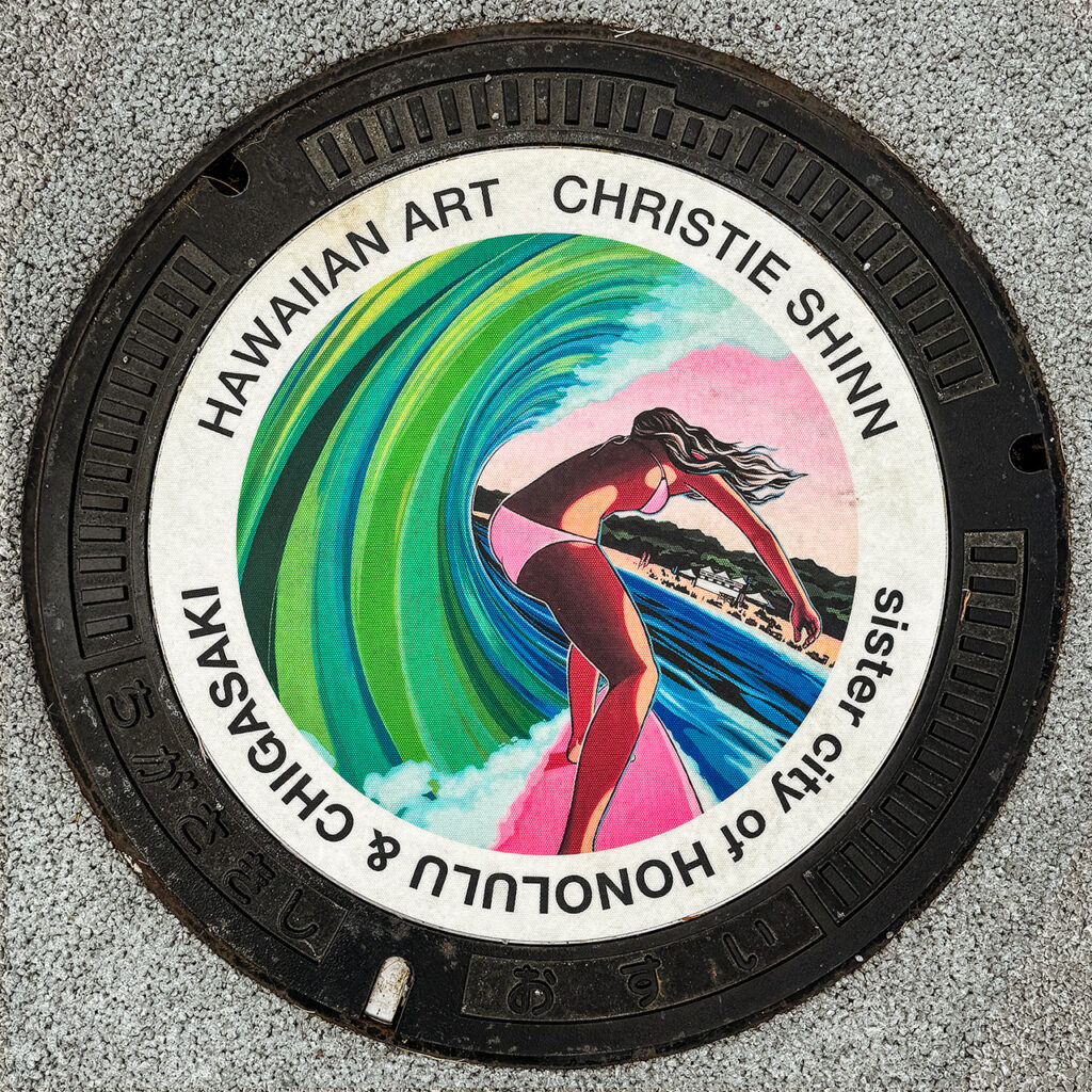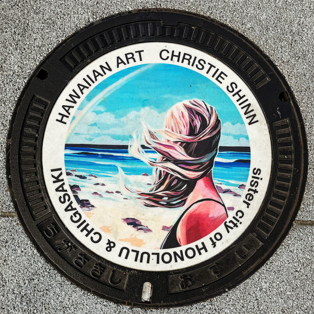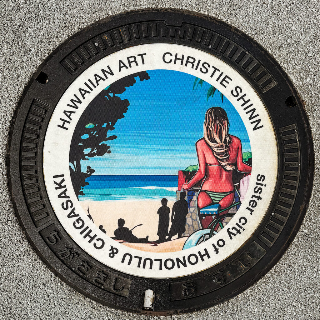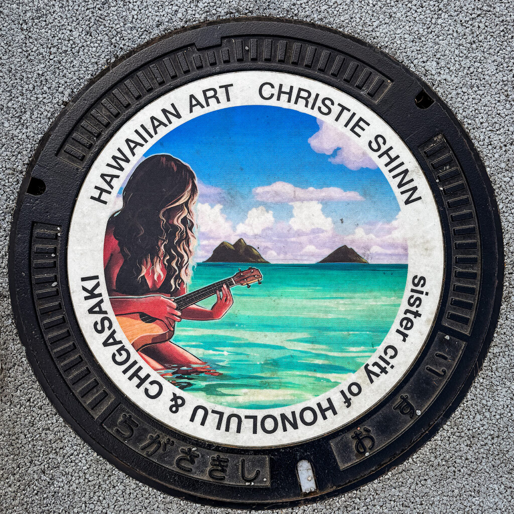 クリスティ・シンさんがデザインしたハワイアンアートの実蓋は6種類あってどれも素敵!駐車場の歩道にあるので撮影もスムーズにコンプリートできました。