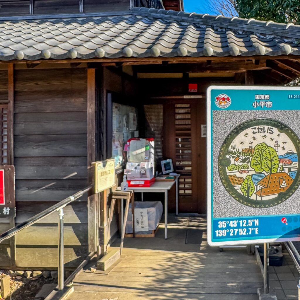 小平の街並みのマンホールカードは小平ふるさと村の管理事務所のブザーを押して係の人に申し出るスタイル。「ホントにここでいいの?」という感じでしたがすぐにもらえました。