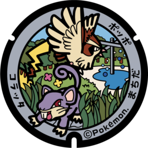 ピカチュウ・ワリンキー・コダックのポケモンマンホール|横浜市(撮影:蓋ログ)